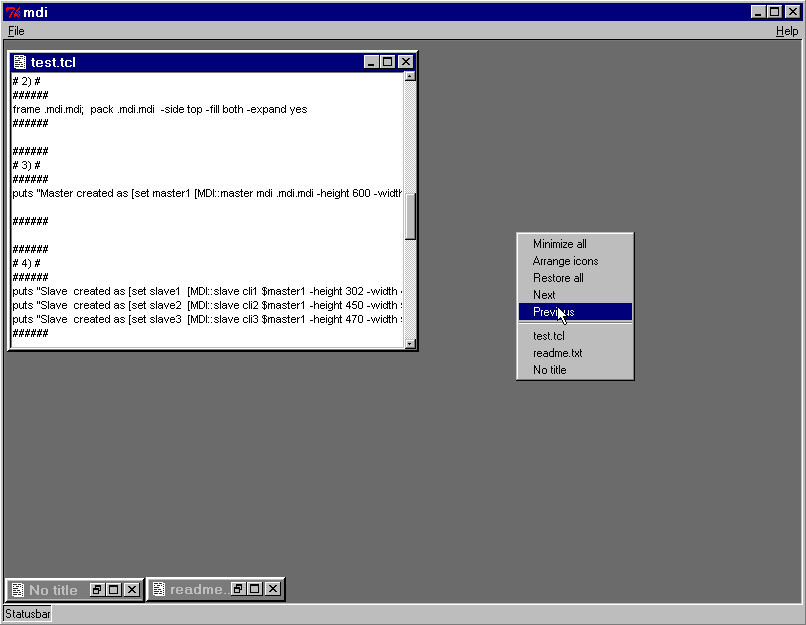 how to use Mysund_MDI This second release is made for Tcl/Tk 8.1