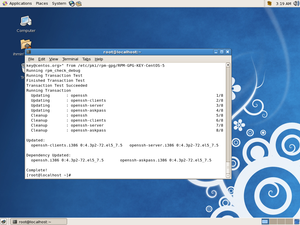 % yum -y install openssh-server openssh-clients