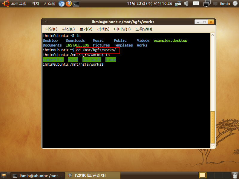 이제 guest os를 부팅후에.. /mnt/hgfs/works 폴더를 접근해서 잘 써지는 확인해봄.