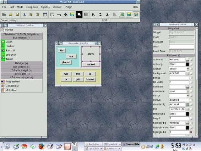 Visual Tcl is a freely-available, high-quality application development environment for UNIX, Windows, Macintosh and AS400 platforms. Visual Tcl is written entirely in Tcl/Tk and generates pure Tcl/Tk code.