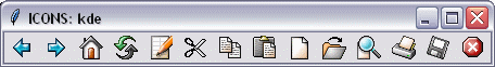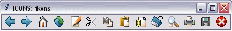 ICONS는 크로스 플랫폼 아이콘/이미지 지원을 제공하기 위한 패키지이지만, Tcl/Tk 프로그래머를 위한 독립형 패키지로도 사용할 수 있습니다. 아이콘 이미지의 소스는 라이브러리 또는 GIF/PNG 이미지 파일이 포함된 폴더일 수 있습니다. 라이브러리 또는 이미지 파일 폴더의 내용을 표시하는 유틸리티(viewIcons)가 패키지에 포함되어 있습니다. 현재 5가지 아이콘 테마가 포함된 라이브러리를 사용할 수 있습니다. 각 아이콘 테마는 각각 16x16 및 22x22 아이콘이 포함된 두 개의 라이브러리 파일로 구성됩니다.