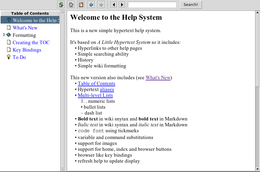 hyperhelp 패키지를 사용하면 Tcl/Tk 애플리케이션에서 도움말 페이지와 같은 마크다운을 표시할 수 있습니다.