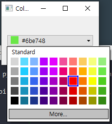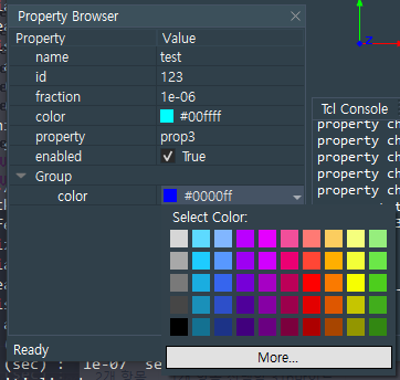 아래는 QColorPicker를 사용하여 PySide6로 포팅된 QtPropertyBrowser에 장착한 모습.