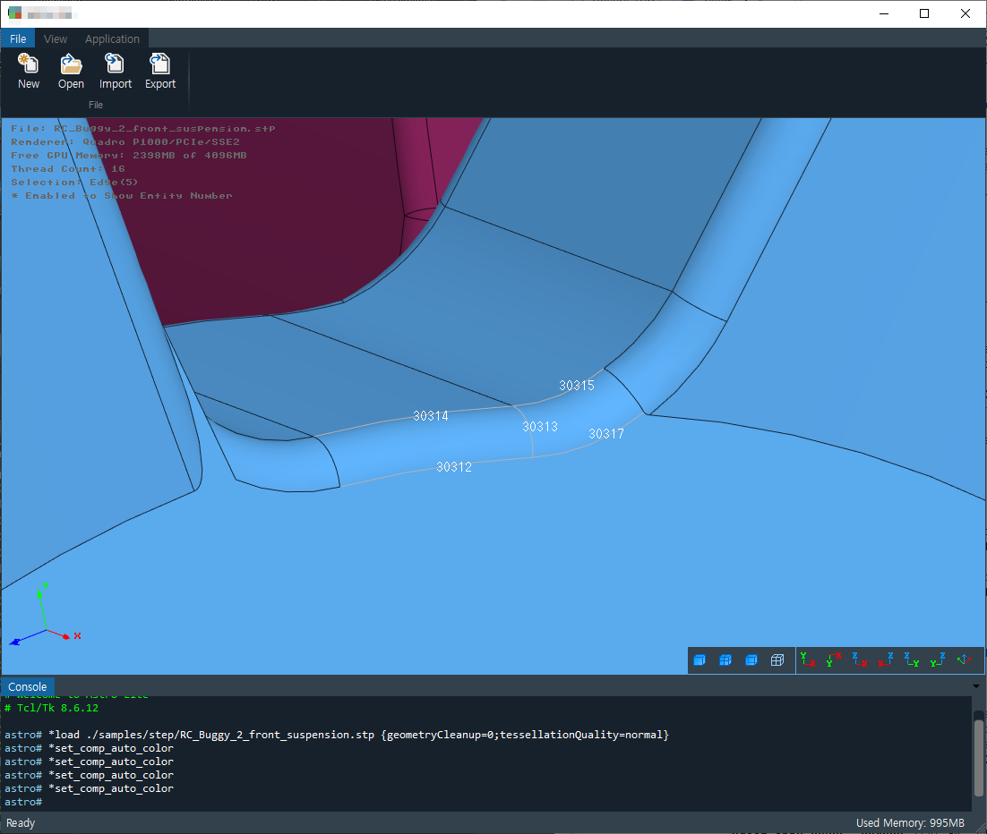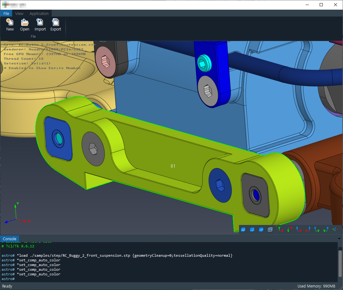 OpenCASCADE는 뷰어를 따로 제공해 주고 있지만 캐드 커널이 바뀔 경우를 대비해 테셀레이션 기능만 쓰고 OpenGL에 직접 그려서 구현 중임.