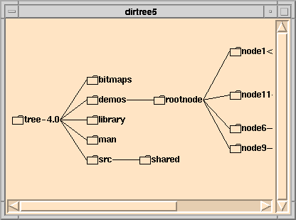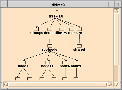 With the tree widget, you can display a tree in a Tk canvas. The nodes can be made up of any number of canvas items or even other Tk widgets. You create the objects that make up a node and the line that connects it to its parent and pass them to the tree widget. After this the tree widget manages the positions of the nodes and end points of the tree lines. Operations are available for inserting, moving and removing nodes and subtrees and for querrying the position of a node in the tree. The tree can be displayed horizontally or vertically.