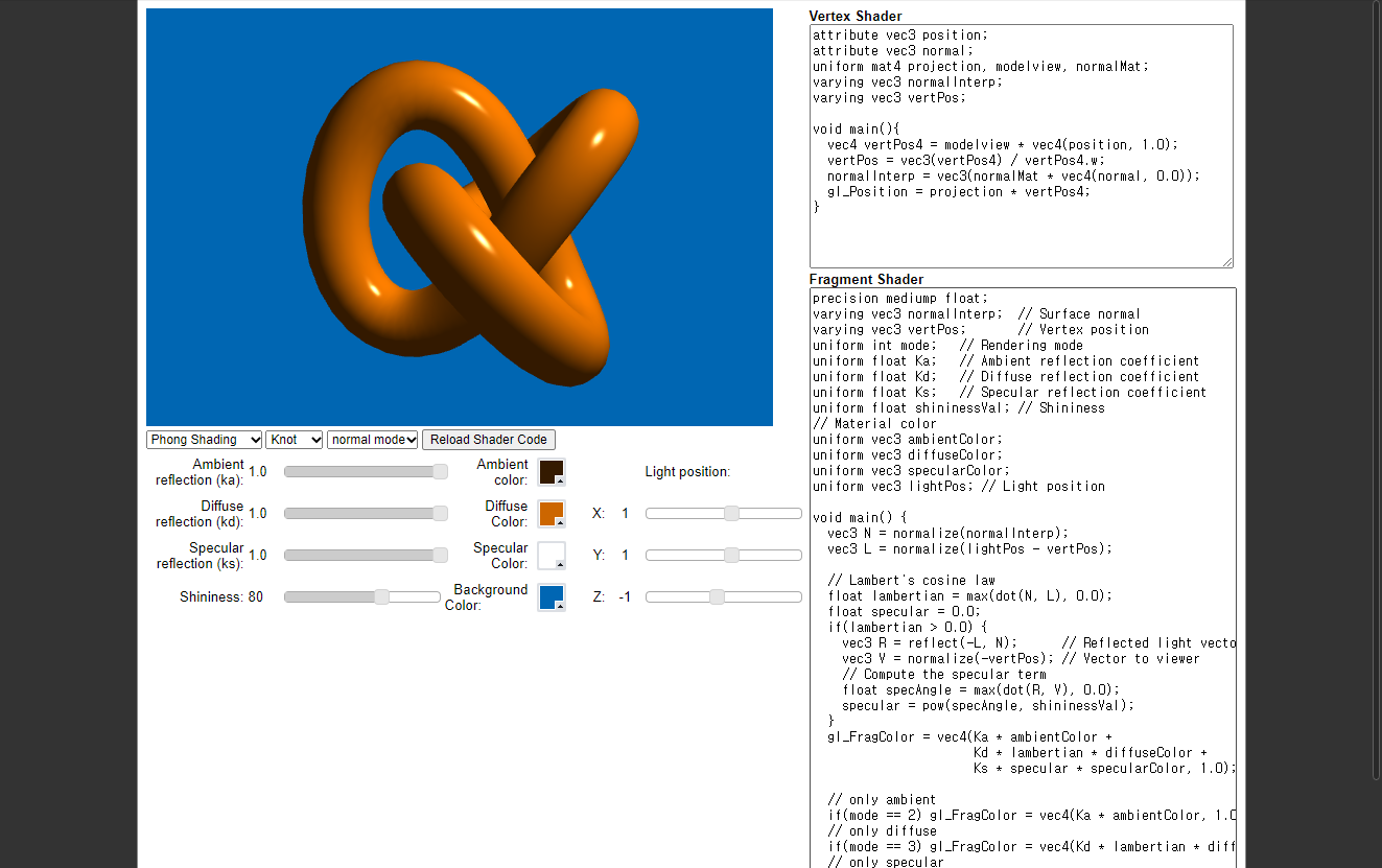 블로그 (Blog)/개발로그 (Devlogs) phong shading의 아주 좋은 예제 티클러 2024. 3. 8. 12:39 http://www.cs.toronto.edu/~jacobson/phong-demo/웹으로 구현되어 있고 쉐이더 코드도 있어 아주 참고하기 좋음. 저작자표시 비영리 변경금지 (새창열림)