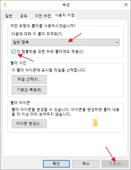 - 다음에 대해 이 폴더 최적화에서 일반 항목 선택