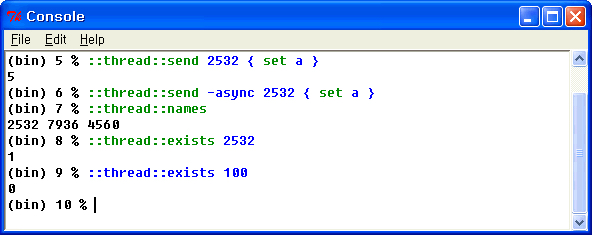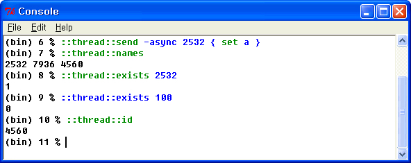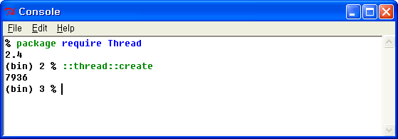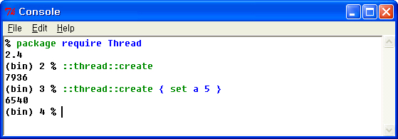 Tcl의 멀티쓰레드 시도는 Tcl8.1부터였으며, Tcl소스코드내부에 testthread라는 숨겨진 커맨드가 있었습니다. 현재는 멀티쓰레드기능이 포함된 정식 Tcl버전이 배포되고 있습니다. :)