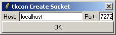 다음에 tkcon을 실행하고, Console메뉴 → Attach to → Socket → Create Connectiond를 실행하면, 다이얼로그가 생성되며, localhost 7272를 입력하고 OK 버튼을 누릅니다.