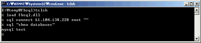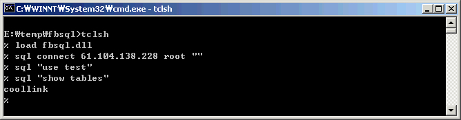 Fbsql은 Tcl의 MySQL 인터페이스 확장 패키지입니다. Fbsql은 Fast base sql의 준말이며, Tcl 8.x이상을 지원합니다. Solaris/Linux/Windows에서 사용가능합니다.