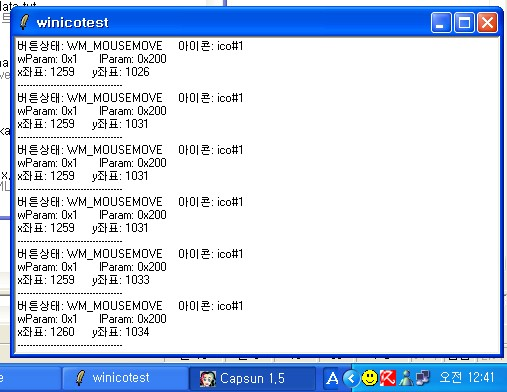 | %m | 마우스 버튼 누름 정보(가령 마우스 왼쪽 버튼이 눌려면 WM_LBUTTONDOWN 등... ) |