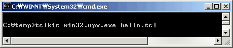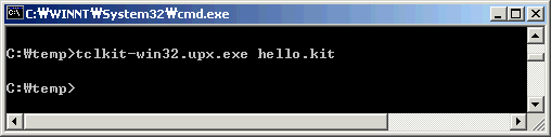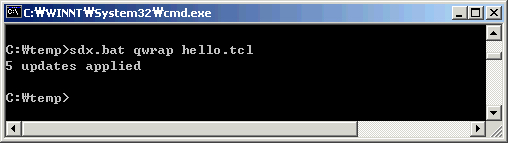 sdx.bat wrap hello.exe -runtime tclkit-win32.upx.exe