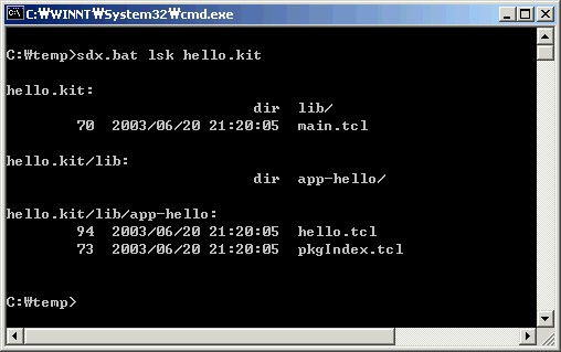 hello.kit의 구조는 위 그림에서 보는 바와 같이 가상파일(VFS) 시스템으로 되어있습니다. hello.tcl 이외의 파일을 패키징하고 싶으면 다음과 같이 합니다.