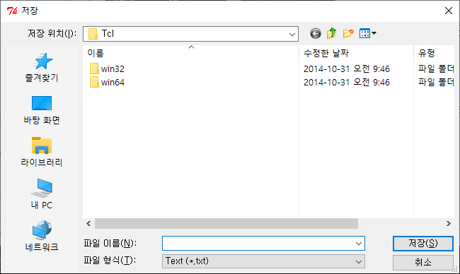 set file [tk_getSaveFile -filetypes $types -title 저장 -defaultextension .txt]