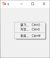 .popup add command -label "종료..." -accelerator "Ctrl+W" -command exit